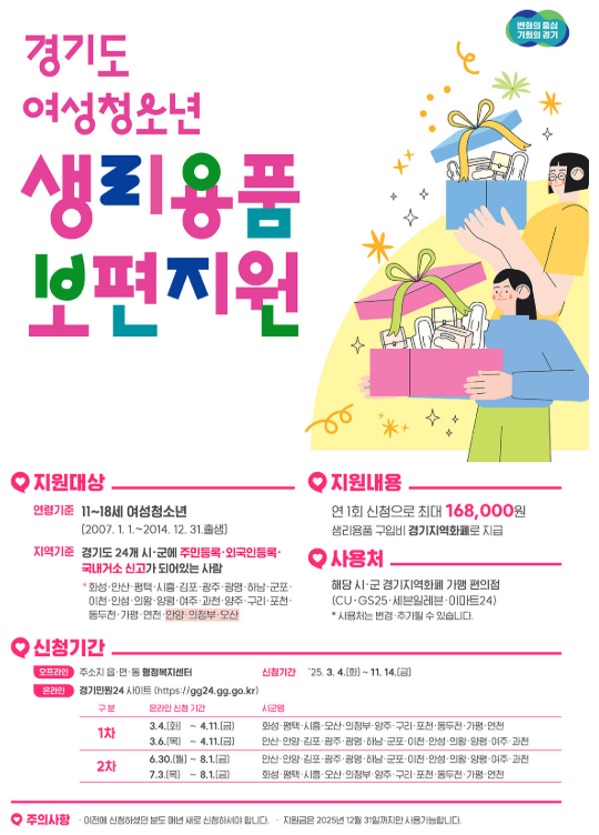 - 경기도 공식 안내 — 여성청소년 생리용품 보편지원사업